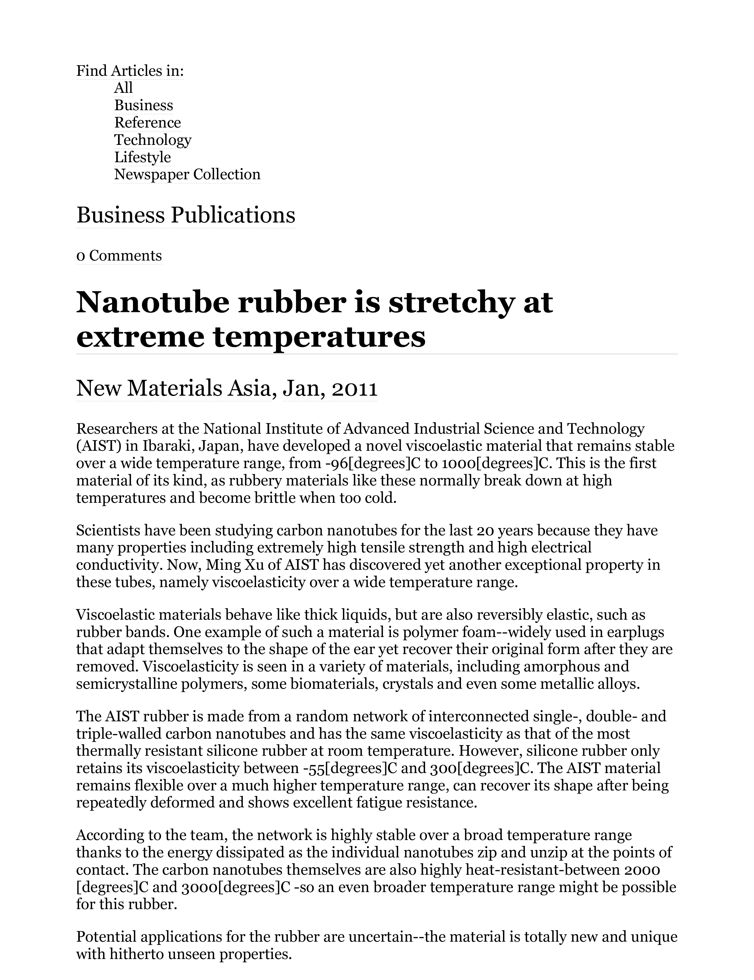 Nanotube rubber is stretchy at extreme temperatures